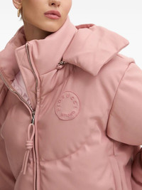 quilted logo-patch jacket Highlights - Baby pink - Quilted design - Hooded neckline - Zip fastening - Logo patch Imported Composition Polyester 52%, Polyurethane 48% Washing instructions Read Manufacturer Guidelines