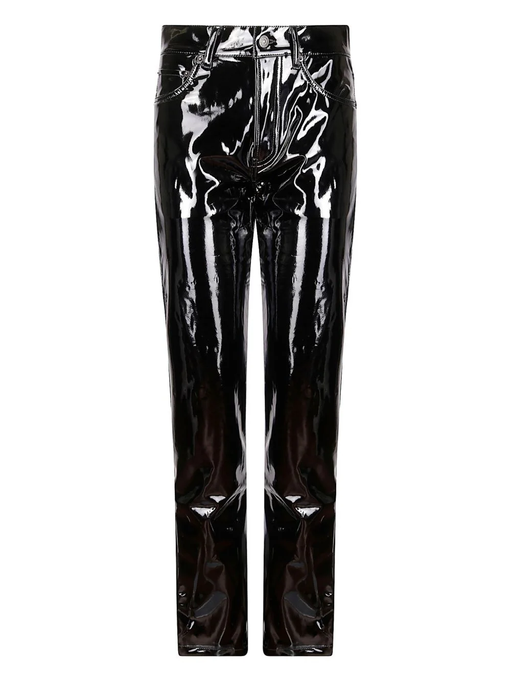 vinyl trousers Highlights - Black - Vinyl finish - High waist - Five pockets - Embossed logo patch Made in Italy Composition Polyurethane 58%, Viscose 35%, Other fibres 5%, Elastane 2% Washing instructions Read Manufacturer Guidelines