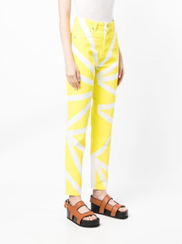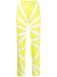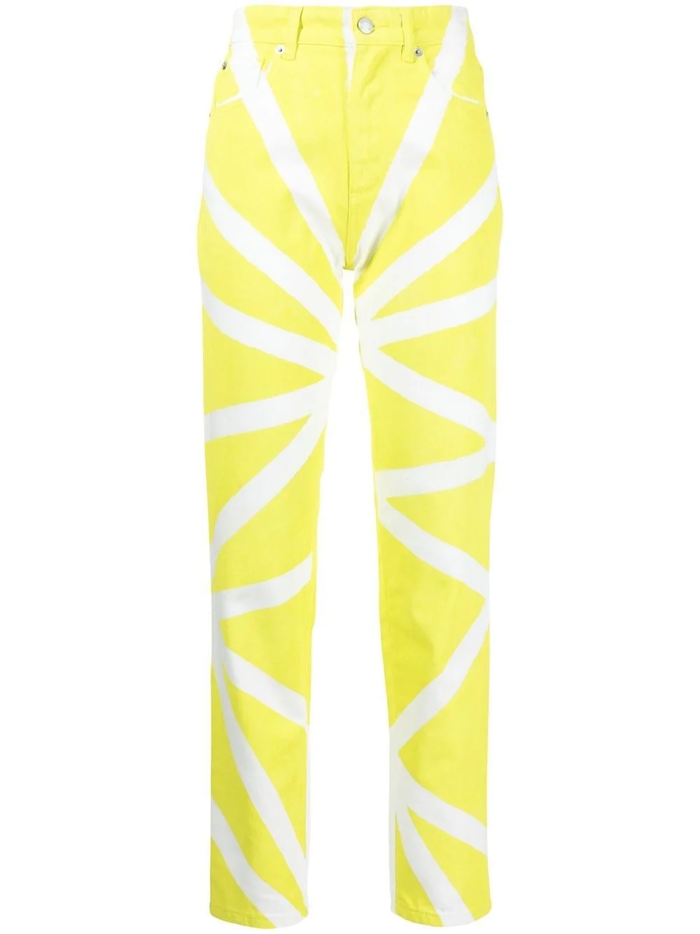 graphic-print straight-leg jeans yellow/white all-over graphic print straight leg classic five pockets front button fastening Imported Composition Body: Organic Cotton 100% SIZE & FIT Model measurements Height 5 ft 9 in(1.74 m) Bust/Chest 31.49 in(80 cm) Hips 35.43 in(90 cm) Waist 24.8 in(63 cm) FittingInformation This piece fits true to size. We recommend you get your regular size Designed to be fitted at the waist and hips, loose over the leg Made with a mid-weight fabric