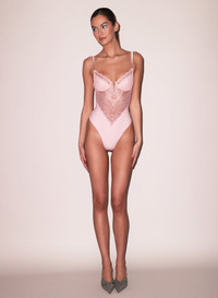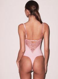 Our Bianca Lace Bodysuit is accented with a beautiful stretch floral lace front. Features figure-flattering boning and underwire cups. Adjustable straps and lace-paneled back with band. Thong cut back and bottom snap closure. Take it out with the Tuxedo Short. Materials & Care - Body: 74% Recycled Polyamide & 26% Elastane - Combo 1: 61% Recycled Polyamide, 20% Polyamide & 19% Elastane - Combo 2: 92% Silk & 8% Elastane - Dry clean or hand wash cold & lay flat to dry. - SKU: BS0451-0993 Size & Fit - Model is a 34B and wearing a size Small.