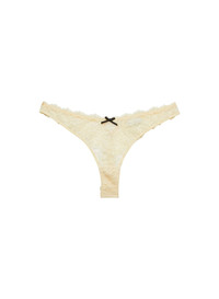Our Bianca Lace Thong, cut from comfortable stretch lace with scalloped leg line and bow detail at front. Flattering high leg cut with back keyhole detail. Pair with the matching Bianca Lace Bra and Garter Belt. Materials & Care - Body: 61% Recycled Nylon, 20% Nylon & 19% Elastane - Combo: 92% Silk & 8% Elastane - Gusset: 100% Cotton - Dry clean or hand wash cold, lay flat to dry. Do not soak. - SKU: PY0504-1036-001 Size & Fit - Model is wearing a size 2, the equivalent to size small.
