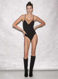 So svelte. Our classic ultra-comfy bodysuit is an essential for every Fleur girl. Cut from super smooth, stretch recycled jersey that feels barely there while refining your shape. Built-in cups hold you in and seamlessly curve naturally with your body. Adjustable straps. Cheeky cut with bottom snap closures. Go effortlessly chic by pairing with your boyfriend jeans, or layer it under that dress that's just a little too sheer to completely bare it. Materials & Care - Body: 75% Recycled Polyamide & 25% Elastane - Straps: 92% Silk & 8% Elastane - Dry clean, or hand wash cold with similar colors and lay flat to dry - SKU: BS0369-0100 Size & Fit - Model is wearing a size Small.