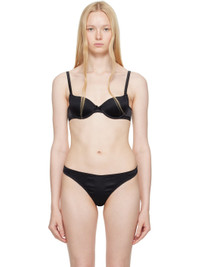 Stretch nylon jersey and stretch silk satin bra. · Sweetheart neck · Bow accent at front · Underwire at padded cups · Partially elasticized hem · Adjustable shoulder straps · Adjustable hook-eye fastening at back · Partial stretch silk satin lining Supplier color: Black Body: 74% polyamide, 26% elastane. Body 2: 92% silk, 8% elastane. Made in Indonesia 252541F073012