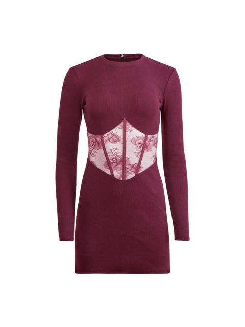 Our Rib and Bouquet Lace Boned Dress, cut from luxe ribbed knit with stretch lace bodice and faux boning detail. Mini length with back zip closure. Take it from happy hour to after hours with your favorite Essentials panty. Materials & Care - Body: 97% Cotton & 3% Spandex - Combo: 79% Nylon & 21% Spandex - Dry clean or hand wash cold & lay flat to dry. Do not tumble dry. - SKU: DR0608-0975 Size & Fit - Model is 5'9 and wearing a size Small. - Shoulder to hem measures approx 32 ½” in length.