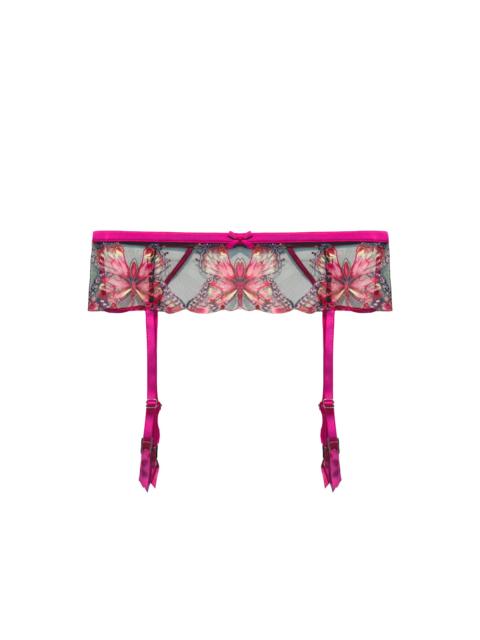 Our Butterfly Embroidery Garter Belt is the perfect addition to amp up your lingerie set. Features custom butterfly embroidery with luxe silk trim. Adjustable straps with center back closure. Complete this stunning set with the matching Butterfly Embroidery Balconette Bra and Cheeky. Materials & Care - Body: 100% Polyamide - Combo: 92% Silk & 8% Elastane - Hand wash cold, hang or lay flat to dry - SKU: GR0054-0566-001 Size & Fit - Model is wearing a size 2, the equivalent to size Small.