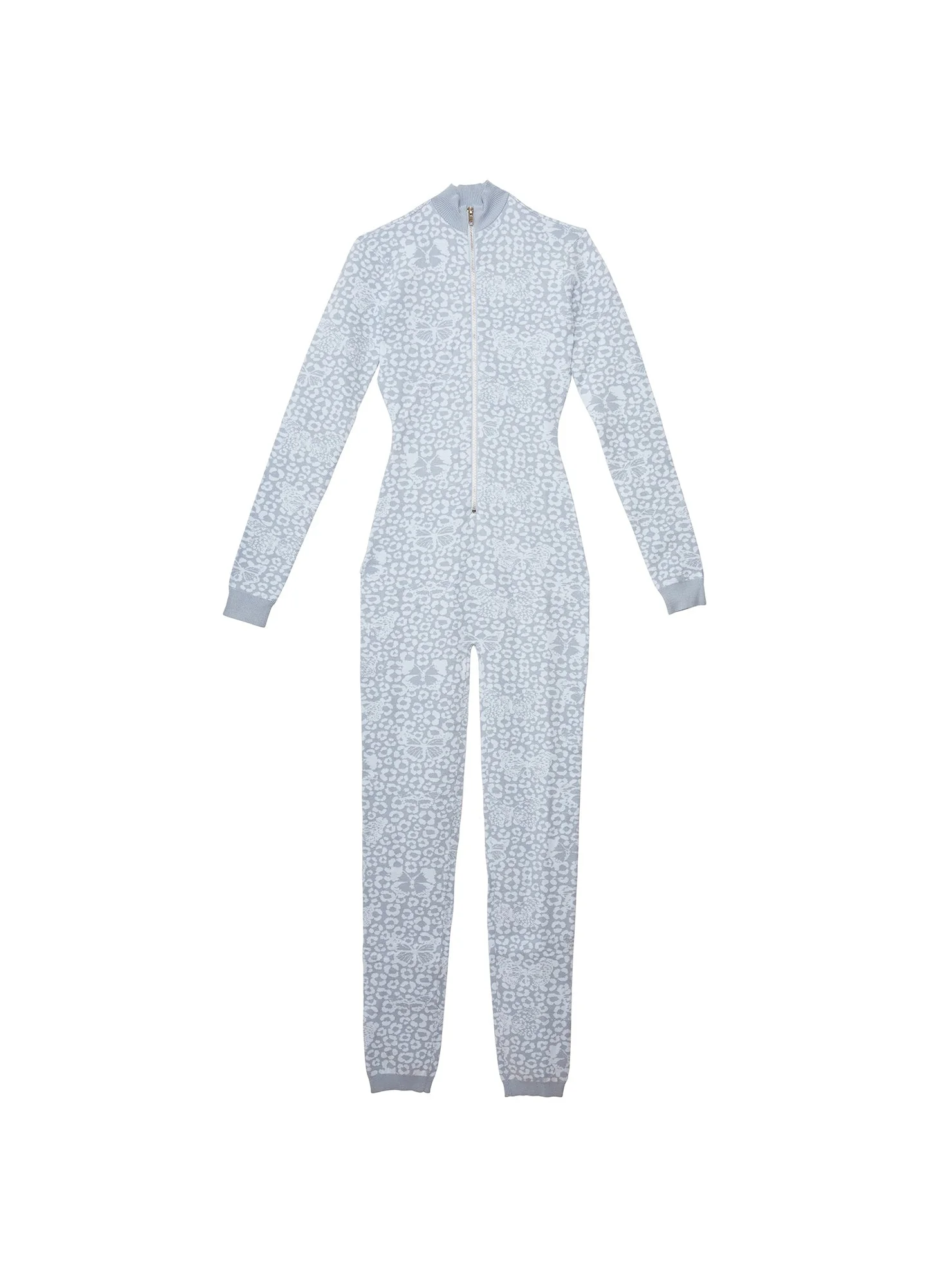Apres-chic. Our Stretch Knit Apres-Ski Catsuit, in custom butterfly leopard jacquard print. Luxe knit catsuit with ribbed cuffs and front zipper detail. Layer under your ski suit on the slopes, and then flaunt on its own at the chalet. Materials & Care - Body: 72% Viscose & 28% Polyester - Dry clean - SKU: JS0073-0843 Size & Fit - Model is 5'9 and is wearing a size S.