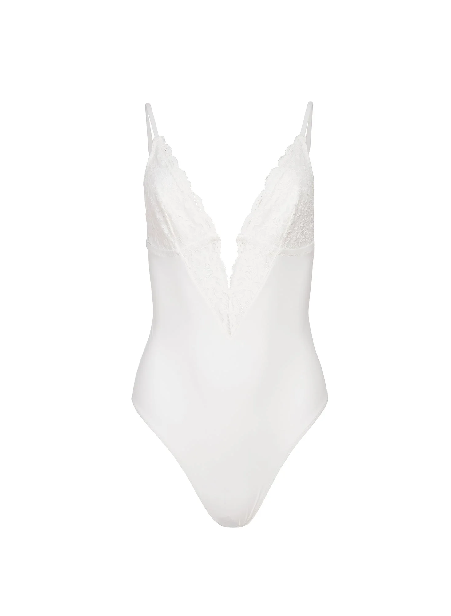 It's always better in a 3-way. Cut from ultra-comfortable, body-smoothing recycled Italian jersey that can be worn as clothing, swim, or for a light work out - that's right, our Charlotte 3-Way Bodysuit really can do it all. Features plunging lace-trimmed neckline, high leg hip and a cheeky cut back. Soft stretch fabric hugs the body in all the right places. Adjustable straps. Take it from the beach to the bar and all the way to the bedroom. Materials & Care - Recycled Jersey: 74% Polyamide & 26% Elastane - Lace: 88% Polyamide & 12% Elastane - Hand wash cold and lay flat to dry. Do not soak. - SKU: BS0332-0300 Size & Fit - Model is wearing a size Small.