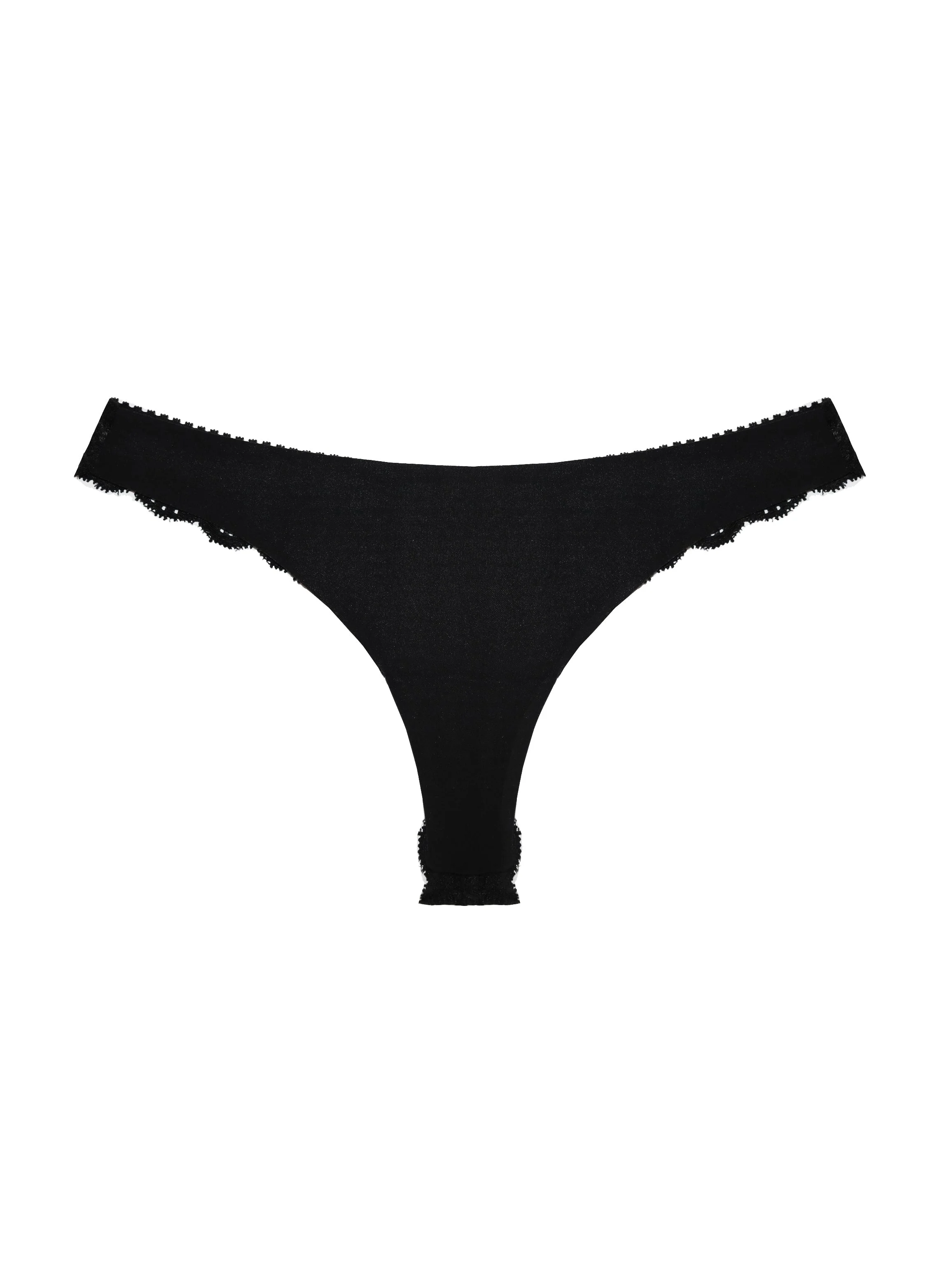 Our Charlotte Lace Back Thong fits flawlessly under any garment – while discreetly fitting in your bag. Scalloped lace back and no-show European microfiber front that won't dig in. Packaged in our Le Smoking pack. Pair with any of our Charlotte Lace bras for a chic, effortless look. Materials & Care - Body: 84% Polyamide & 16% Elastane - Hand wash cold, lay flat to dry. Do not soak. - SKU: PY0156P-0100 Size & Fit - Model is 5'9 and is wearing a size s/m