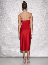 Eco fox. Our Keyhole Slip Dress is cut from high-grade performance fiber made from 97% recycled materials. Features bra inspired neckline and cups with playful keyhole detail. Flattering bias cut hits just below the knee. Adjustable straps. Wear out with a leather jacket and heels, or flaunt own its own for a seductive nighttime look. Materials & Care - Body: 97% Recycled Poly & 3% Spandex - Dry clean only - - SKU: DR0385-0323 Size & Fit - Model is 5'9 and wearing a size XS.