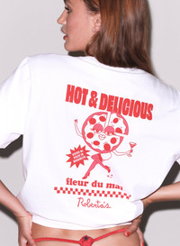Our exclusive collaboration with Roberta's pizzeria, Fleur x Roberta's Unisex Tee cut from 100% organic pima cotton. Ultra comfy white crew neck t-shirt with custom lettering. Relaxed fit. Looks chic taken out with jeans, or lounging with the Luxe Flutter Panty. Materials & Care - Body: 100% Organic Pima Cotton - Hand wash cold with like colors, tumble dry low & remove promptly. Warm iron if needed. - SKU: TP0739-0300 Size & Fit - Model is wearing a size Small.