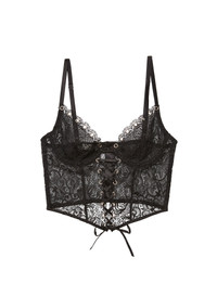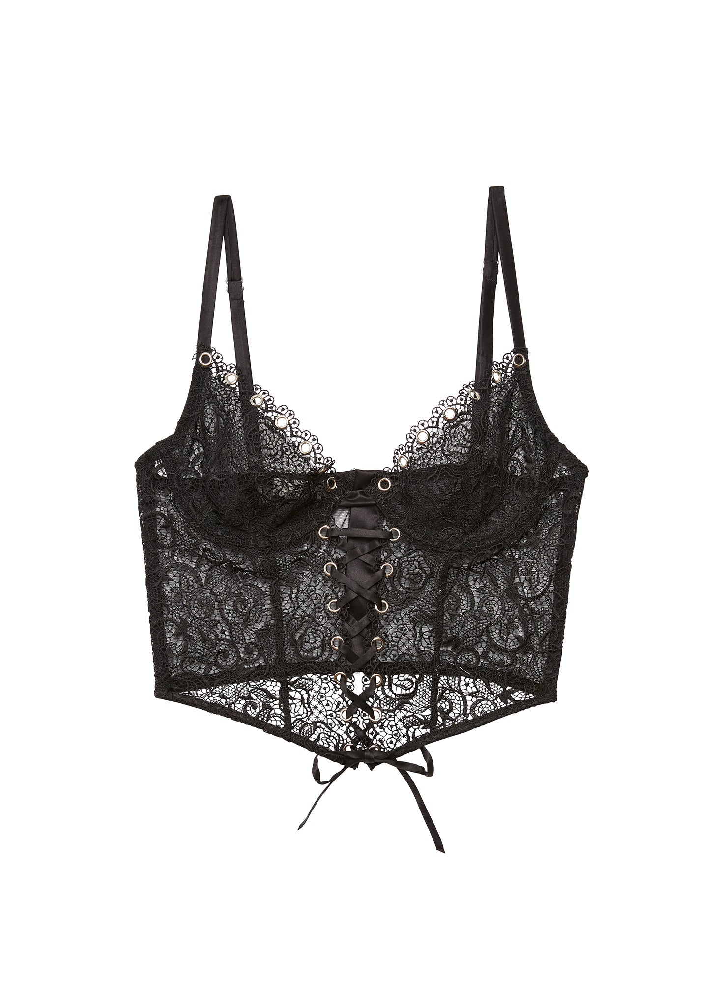 All eyes on you. Our flirty Eyelet Embroidery Lace Up Bustier, with custom eyelet embroidery and adjustable silk lace up front. Features grommet detailing and scalloped underwire cups. Mesh back with exposed zipper detail, adjustable straps. Pair with the Eyelet Embroidery V String for an ultra hot bedroom set, or take it out with your favorite pair of boyfriend jeans. Materials & Care - Body: 100% Polyester - Combo: 85% Polyamide & 15% Elastane - Combo 2: 92% Silk & 8% Elastane - Dry clean, or hand wash cold & lay flat to dry. Do not soak. - SKU: TP0572-0100 Size & Fit - Model is 5'11 and wearing a size S.