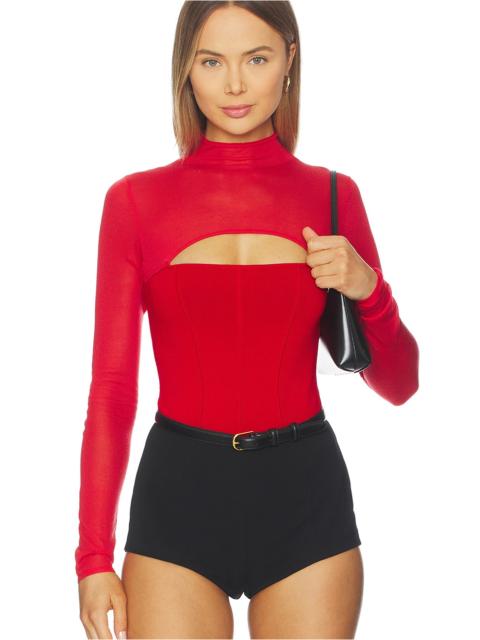 - Body: 65% viscose 35% nylon Contrast Fabric: 90% tencel 10% silk - Made in China - Hand wash cold - Partially lined - Gusset snap button closure - Mesh and knit fabric - High neck - Garment is intentionally sheer in certain areas - Revolve Style No. FLER-WS175 - Manufacturer Style No. BS0490