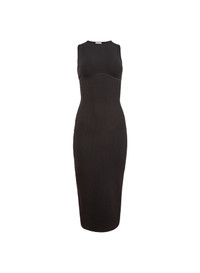 Our Hourglass Rib Midi Dress, featuring lingerie-inspired underbust detail with ultra flattering compression waist to shape and cinch. Midi length hits below the knee. Layer over the Le Stretch Micro V-String for a seamlessly sexy look. Materials & Care - Body: 72% Polyester, 18% Tencel & 10% Spandex - Lining: 72% Nylon & 28% Spandex - Hand wash cold with similar colors, hang to dry. Do not soak. - SKU: DR0641-0100 Size & Fit - Model is 5'11 and wearing a size Small.