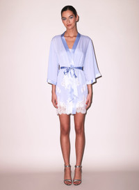 The Juliet Lace Robe in lightweight silk georgette with lace applique details. Features a playful fit with wide sleeves. Wraps across the body and is secured by a sash. Complete the look with the matching Juliet Button Slip. Materials & Care - Body: 49% Polyamide, 28% Cotton, & 23% Lyocell - Combo: 92% Silk & 8% Spandex - Dry clean only - - SKU: RB0110-1008S Size & Fit - Model is 5'11 and wearing a size XS/S.