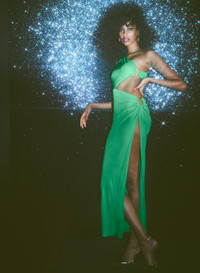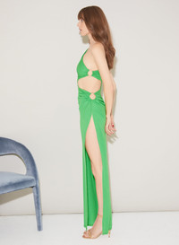 Boogie nights. Our ultra hot Asymmetric Side Knot Dress, featuring side cutout with gold ring detail and high leg opening to really amp up the sex appeal. Cut from comfortable, soft stretch jersey. Pair with heels and an extra dirty martini. Materials & Care - 100% Rayon - Dry clean only - SKU: DR0447-0788 Size & Fit - Model is 5'9 and wearing a size Small.
