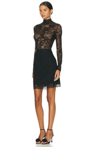 Details - Self: 88% polyamide, 12% elastane - Lining: 85% polyamide, 15% elastane - Made in China - Hand wash - Partially lined - Hidden back zipper closure - Side cut out - Lace fabric with unlined upper and hem - Our Style No. FLEF-WD98 - Manufacturer Style No. DR0479