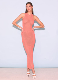 Our semi-sheer Lace Pointelle Maxi Dress, cut from soft stretch knit with pointelle detailing. Features perfectly placed florals for added coverage. Lightweight with flattering racer back. We love it as a swim coverup or sexy going out piece. Materials & Care - Body: 70% Viscose, 29% Nylon, & 1% Elastane - Hand wash cold & lay flat dry. - SKU: DR0540-0915 Size & Fit - Model is 5'11 and wearing a size S. - This garment runs long. We recommend wearing with heels.