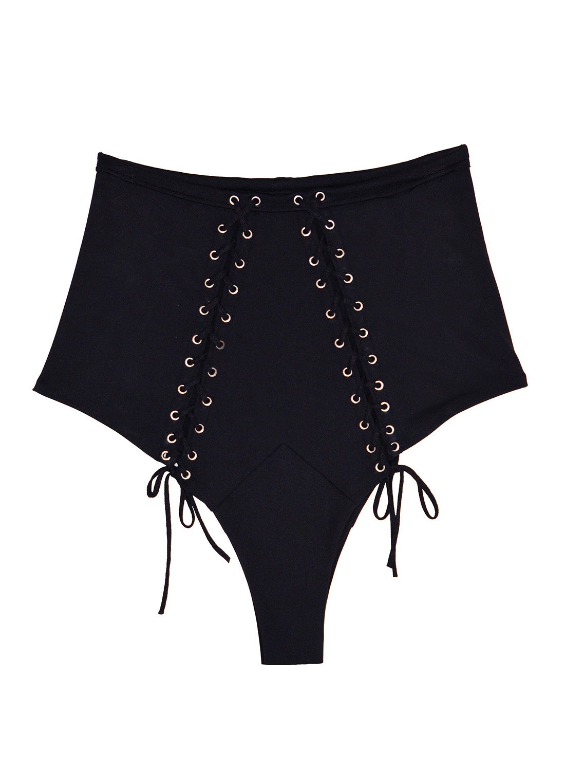 The sexiest high waist bikini you'll ever wear, with lacing detail that shows just enough. Italian stretch fabric shapes and holds, accentuating your waistline. Fully lined. Pair with the matching Lacing Back Bandeau. Materials & Care - 80% Polyamide, 20% Elastane - Lining: 75% Nylon, 25% Spandex - Hand wash cold, hang or lay flat to dry - SKU: SW0007-0100 Size & Fit - Model is 5'10 and wearing a size S.