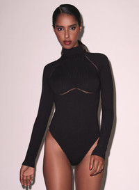 Our Rib Bodysuit with Lattice Trim, cut from lightweight ribbed knit with lattice lace detail. Thong cut back and bottom snap closure. Take it out with the Nylon Mini Skirt. Materials & Care - Body: 80% Polyester, 16% Rayon & 4% Spandex - Lace: 60% Nylon & 40% Elastic - Gusset: 100% Cotton - Dry clean, or hand wash cold & lay flat to dry. - SKU: BS0434-0100 Size & Fit - Model is 5'9 and wearing a size Small.