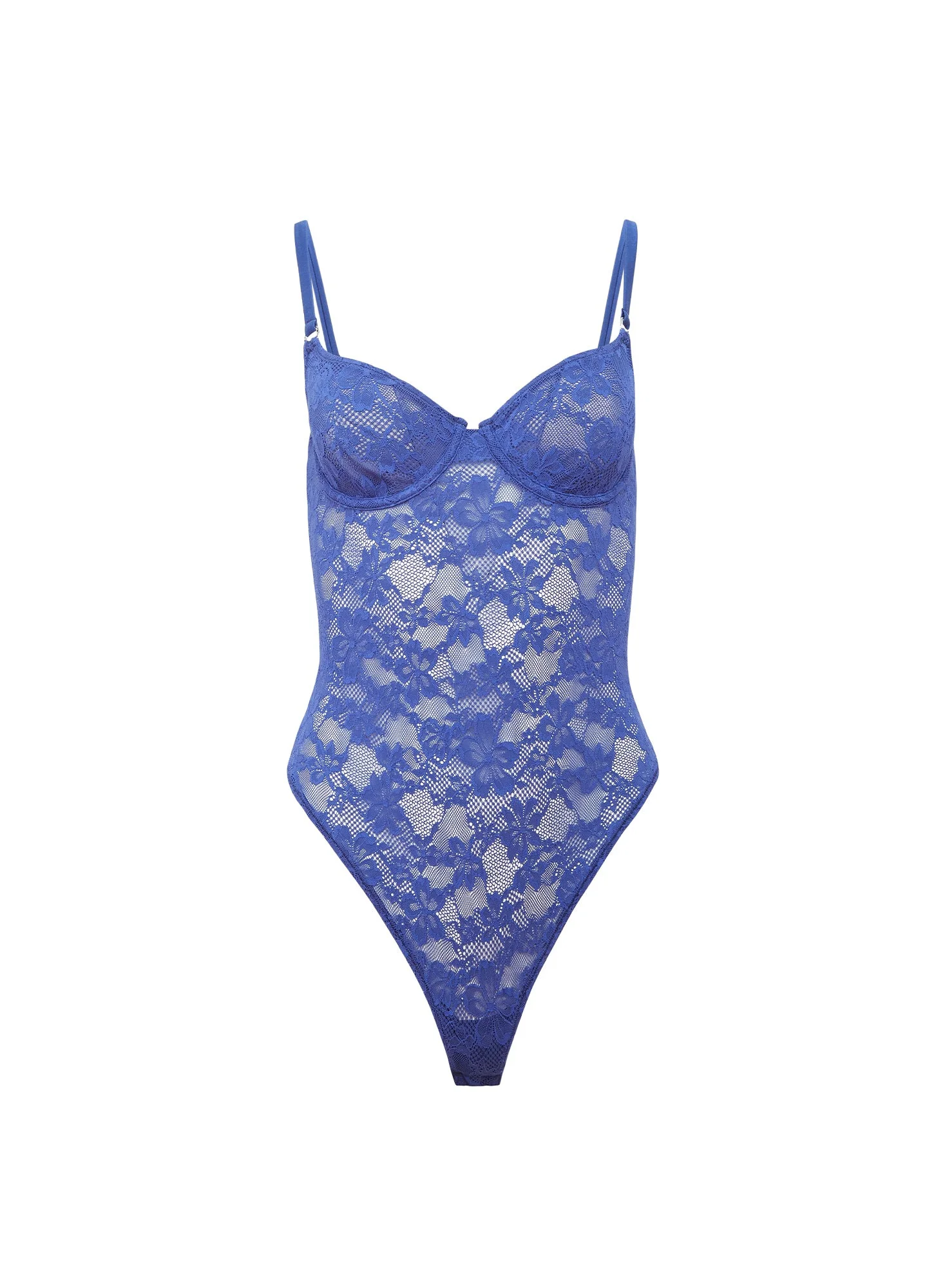 Work your body. Our Le Stretch Lace Bodysuit, cut from ultra comfortable 4-way stretch lace with molded cups for a smooth, seamless finish. Features luxe silk adjustable straps, and snap bottom closure with thong cut back. Pair with trousers or flaunt on its own to make a statement at the bar or in the bedroom. Materials & Care - Body: 37% Nylon, 29% Recycled Nylon, & 34% Spandex - Combo: 95% Silk & 5% Elastane - Gusset: 100% Cotton - Hand wash cold, lay flat to dry - SKU: BS0394-0624 Size & Fit - Model is 5'11 and wearing a size Small.