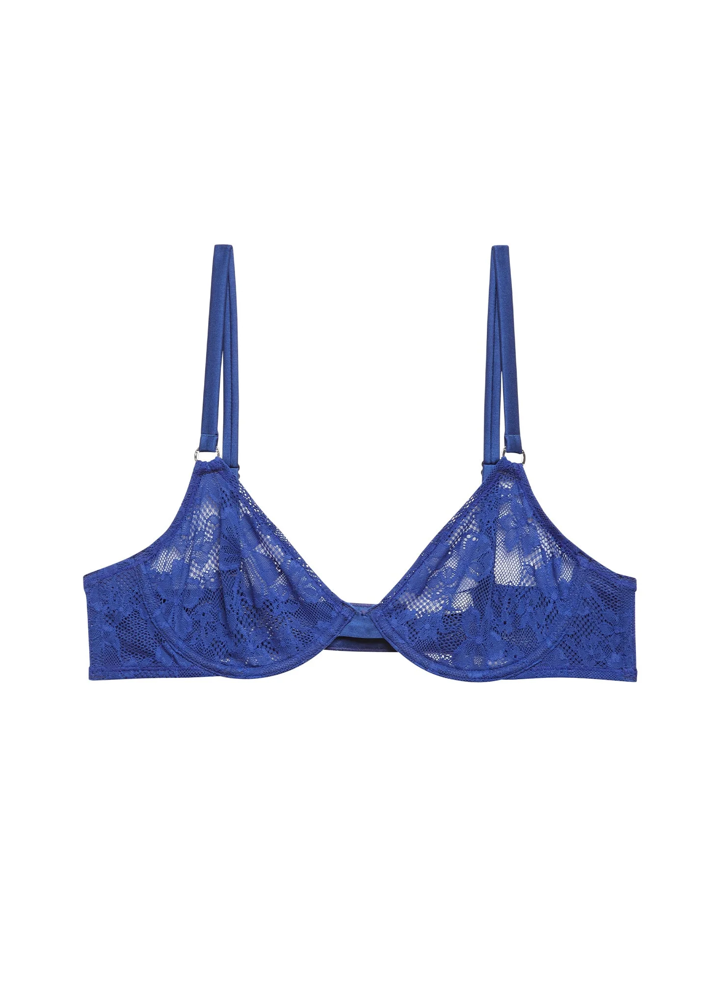 Feels like nothing, gives you everything. Our Le Stretch Lace Demi Bra, cut from ultra comfortable 4-way stretch lace with underwire cups for a smooth, seamless finish. Features luxe silk adjustable straps with silver o-ring detail. Pair with the matching Le Stretch Lace Thong or Cheeky for a set that's comfortable enough for everyday, and sexy enough for a night out. Materials & Care - Body: 37% Nylon, 29% Recycled Nylon, & 34% Spandex - Combo: 95% Silk & 5% Elastane - Hand wash cold & lay flat to dry. - SKU: BR0389-0624-30A Size & Fit - Model is wearing a size 34B.