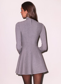 Our Long Sleeve Flared Corset Dress, cut from soft stretch jacquard with corset seaming to show off your waist. Features mock neck with exposed back zipper closure and playful flare skirt. Fitted style, mini length. Layer over your favorite Essentials Panty for a seamless look. Materials & Care - Body: 72% Viscose & 28% Polyester - Dry clean, or hand wash cold & lay flat to dry - SKU: DR0563-0339 Size & Fit - Model is 5'11 and wearing a size Small.