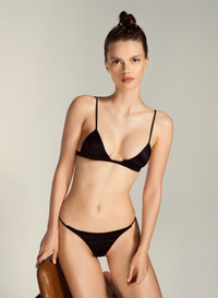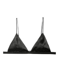 Our best selling, stretch silk satin Luxe Triangle Bra with smooth band and silk lined cups. Perfect under a tee, as a luxe everyday bra, or worn by itself as a top under a blazer. Back hook closure and adjustable straps. Complete the set with the matching Laced Up Luxe Cheeky, Luxe V-String or Luxe Thong. Materials & Care - Body: 92% Silk & 8% Elastane - Hand wash cold, hang or lay flat to dry. Do not soak. - SKU: BR0092-0100 Size & Fit - Model is a 34B and wearing a size Small. - This item runs small. If you prefer more coverage we recommend sizing up.