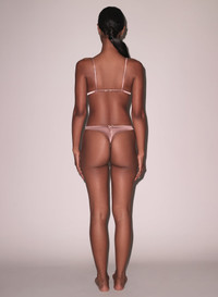 Our Molded Luxe Triangle Bra, featuring soft molded triangle cups that lay perfectly smooth under any garment. Smooth band with adjustable straps and back hook closure. Perfect under a tee, as a luxe everyday bra, or worn by itself as a top under a blazer. Complete the set with the matching Luxe Cheeky, Luxe V String or Luxe Thong. Materials & Care - Body: 92% Silk & 8% Elastane - Hand wash cold, hang or lay flat to dry. Do not soak. - SKU: BR0442-8300 Size & Fit - Model is a 34B and wearing a size Small.