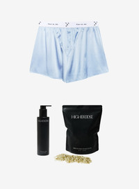 Elevate your senses with the Oxytocin Gift Set, our exclusive collaboration with Higher Dose. Turn on the tub and drop into euphoria with the Serotonin Soak, uniquely formulated with Magnesium Zechstein Flakes to relax the mind and boost mood. Follow up with the Ritual Body Oil, a clinically proven formula that instantly enhances skin elasticity and delivers deep moisturization, and our best selling Unisex Washable Silk Boxers. Beautifully gift wrapped in Fleur logo box with a black ribbon bow. Each set includes: - Unisex Washable Silk Boxer - Higher Dose Serotonin Salt Soak, 32oz - Higher Dose Ritual Oil, 5 fl oz Materials & Care - Body: 92% Silk & 8% Elastane - Hand wash cold, lay flat to dry - Magnesium Zechstein Flakes, French Green Clay, Apple Cider Vinegar, Essential Oils - 32oz per pouch (4 baths per pouch) - Laminaria Ochroleuca, Plankton & Seaweed Extract Blend, Ayurvedic Botanical Oil Blend, Essential Oil Blend - 150 ml (5.0 oz glass bottle with a pump) - SKU: GB0055-0612 Size & Fit - Model is wearing a size Small.