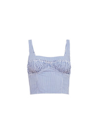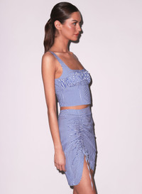 Our Poplin Bustier Top, cut from lightweight cotton poplin with ruched bust and ruffle detail. Flattering lowcut neckline with exposed back zipper detail. Adjustable straps. Complete the set with the matching Poplin Draped Ruched Skirt. Materials & Care - Body: 76% Cotton, 21% Polyamide & 3% Elastane - SKU: TP0662-1019 Size & Fit - Model is wearing a size 4.