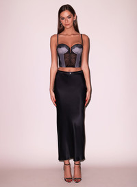 Our Solita Bustier, featuring sexy v-plunge neckline with hand cut lace paneling. Adjustable straps & structured cups for lift. Exposed back zipper detail. Take it from bar to bedroom with the Silk Bias Skirt. Materials & Care - Body: 100% Polyamide - Combo 1: 100% Cotton - Combo 2: 78% Polyamide & 22% Elastane - Combo 3: 90% Polyamide & 10% Elastane - Combo 4: 92% Silk & 8% Elastane - Dry clean only - SKU: TP0624-0948 Size & Fit - Model is a wearing a size 0. - This style runs slightly large. If in between sizes, we recommend sizing down one size.