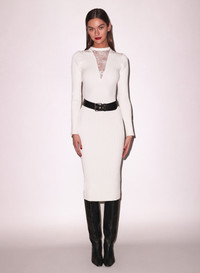 Must have. Our Quinn Midi Dress made from soft-stretch ribbed knit with lace insert.Crewneck collar with buttons on the back for reversible option. Flattering mid-calf length. Layer over the Le Stretch Micro Shaping Thong for a seamless look. Materials & Care - Body: 72% Viscose & 28% Polyester - Combo: 49% Polyamide & 23% Lyocell - Dry clean or hand wash cold, lay flat to dry. - SKU: DR0687-0300 Size & Fit - Model is 5'11 and wearing a size Small.