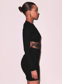 Our Rib and Bouquet Lace Boned Dress, cut from luxe ribbed knit with stretch lace bodice and faux boning detail. Mini length with back zip closure. Take it from happy hour to after hours with your favorite Essentials panty. Materials & Care - Body: 97% Cotton & 3% Spandex - Combo: 79% Nylon & 21% Spandex - Dry clean or hand wash cold & lay flat to dry. Do not tumble dry. - SKU: DR0608-0100 Size & Fit - Model is 5'9 and wearing a size Small. - Shoulder to hem measures approx 32 ½” in length.