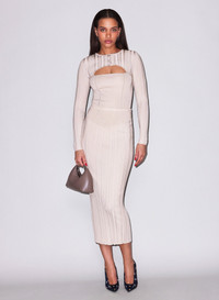 Our Rib Maxi Skirt, cut from luxe knit material with directional ribbing to flatter your figure. Pair with the matching Rib Shrug Bodysuit or Hook-Up Rib Cami. Materials & Care - Body: 68% Viscose & 32% Nylon - Dry clean & hand wash cold, lay flat to dry. - SKU: SK0239-1081 Size & Fit - Model is 5'9 and wearing a size Small.