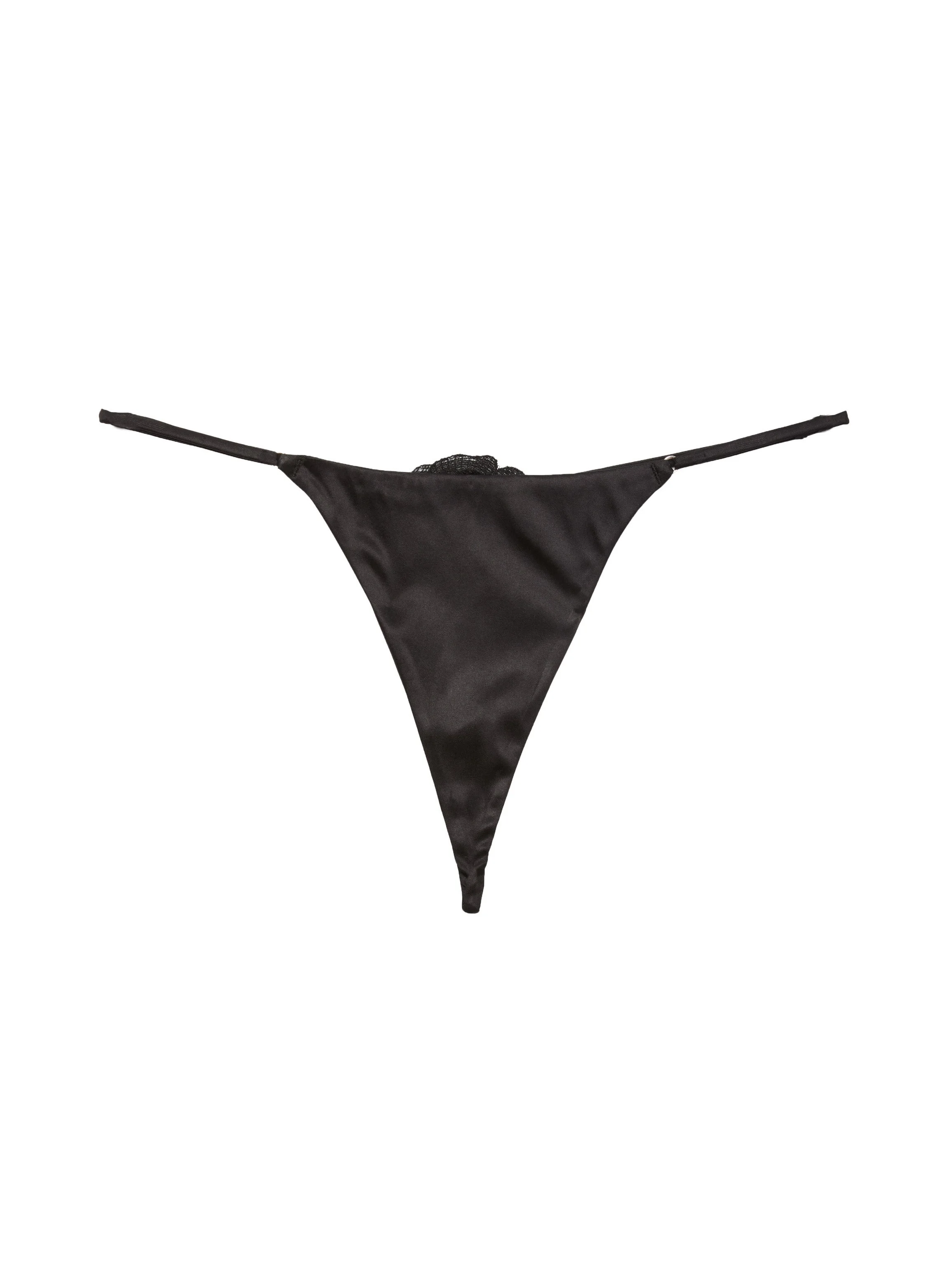 Coming up roses. Our classic, barely there silk Luxe V-String, now with ultra sexy rose applique detail at back. Features seamless front and thin straps at side that don't dig in. Pair with the Luxe Triangle Bra, or flaunt all on its own. Materials & Care - Body: 92% Silk & 8% Elastane - Combo: 100% Polyester - Gusset: 100% Cotton - Hand wash cold, hang or lay flat to dry. Do not soak. - SKU: PY0381-0100-001 Size & Fit - Model is wearing a size 2, the equivalent to size Small.