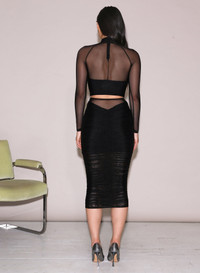 Set me up. Bring the heat in our Ruched Midi Skirt, cut from soft stretch mesh with flattering allover ruching. Elasticized waist with invisible zip closure. Pair with the matching Mesh Mock Neck Top for a chic monochromatic look. Materials & Care - Body: 95% Nylon & 5% Spandex - Combo: 78% Polyamide & 22% Spandex - Dry clean only - SKU: SK0163-0100 Size & Fit - Model is 5'9 and wearing a size S.