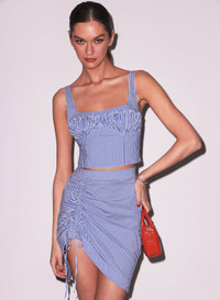 Our Poplin Draped Ruched Skirt, cut from lightweight cotton poplin. Features adjustable drape at side to show little or as much leg as you want. Invisible side zipper closure. Complete the set with the matching Poplin Bustier Top. Materials & Care - Body: 76% Cotton, 21% Polyamide & 3% Elastane - SKU: SK0211-1019 Size & Fit - Model is 5'11 and wearing a size 4. - Back center skirt to hem measures approx 20” in length.
