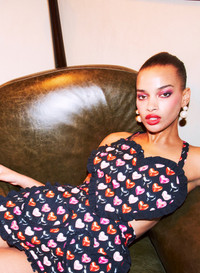 Best served hot. Our flirty Ruffle Heart Apron, illustrated with custom glass heart motif. Features heart shaped top and pockets with playful ruffle trim. Tie closure at neck and waist. Keep it hot with the Charlotte Peekaboo Bra and Crotchless Panty. Materials & Care - Body: 80% Polyester & 20% Cotton - Dry clean or machine wash cold & lay flat to dry. Warm iron if needed. - SKU: AC0195-0980-0OS Size & Fit - One size fits most.