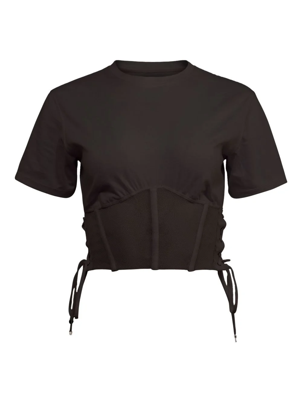 Sabrina T-shirt Highlights - Cedar brown - Side tie fastening - Corset style - Round neck - Short sleeves Imported Composition Cotton 100% Washing instructions Read Manufacturer Guidelines