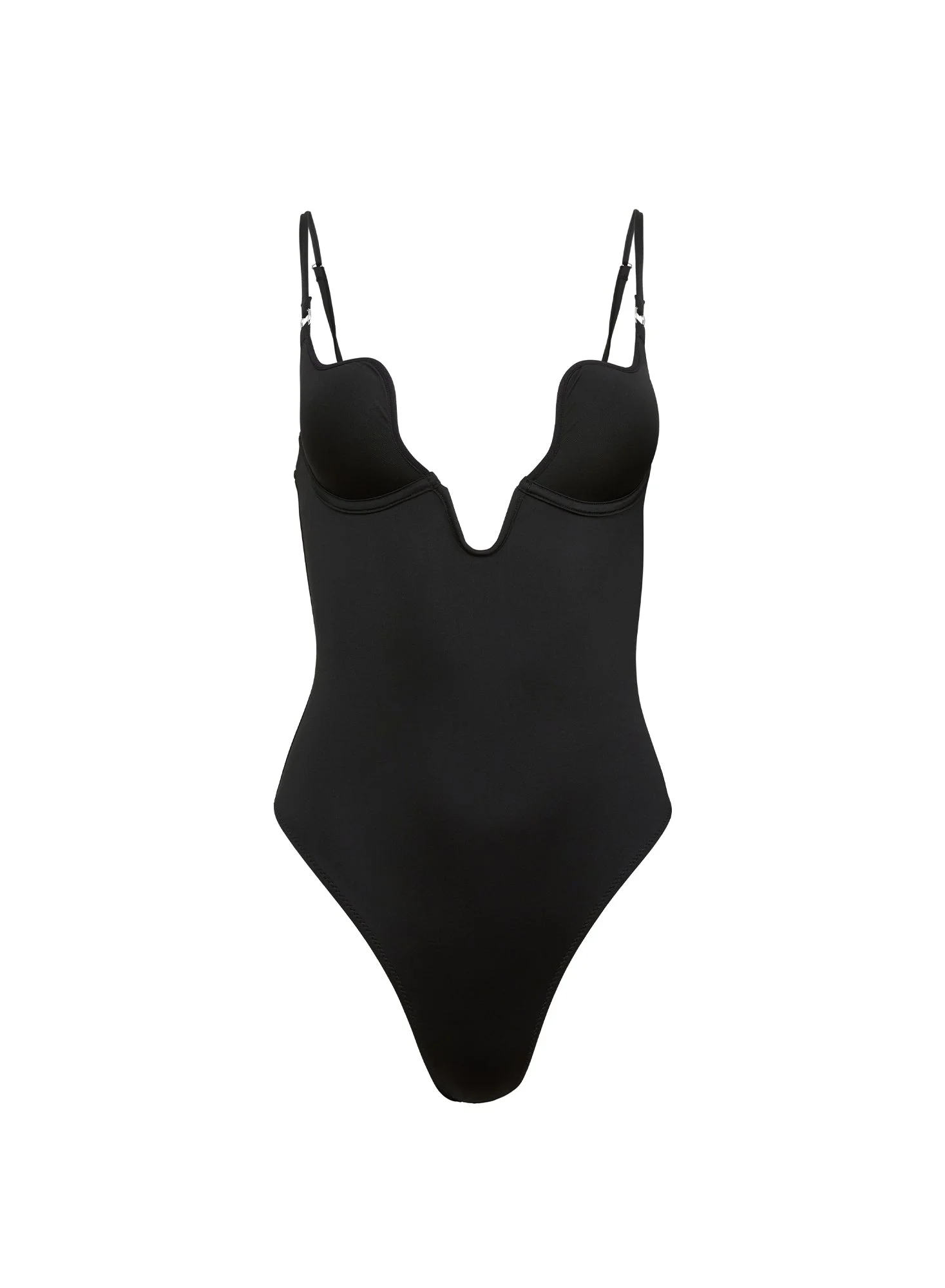Take the plunge. Based on our best selling bodysuit, the Seduce U-Plunge One Piece is cut from luxe Italian stretch fabric with molded cups for a smooth finish. Features adjustable straps with o-ring detail and flattering high leg cheeky cut. Fully lined. Can be worn seamlessly from beach to bar with the Simone Maxi Dress. Materials & Care - Body: 92% Polyamide & 20% Elastane - Lining: 82% Polyamide & 18% Elastane - Hand wash cold & lay flat to dry. - SKU: SW0146-0100 Size & Fit - Model is wearing a size Small.