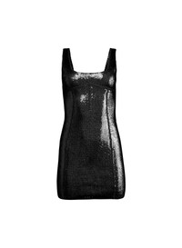 Be the life of every party in our Sequin Knit Bodycon Dress. Features flattering square neckline with extra support at top cups and back for lift and smoothing, so no bra is needed. Corset effect princess seams give shape and flatter your figure. Pair with heels and your favorite Essentials panty for a look that goes perfectly from happy hour to after hours. Materials & Care - Body: 72% Viscose & 28% Polyester - Spot clean only - SKU: DR0696-0100 Size & Fit - Model is 5'11 and wearing a size Small. - Size Small measures approx 24" from center front to hem.