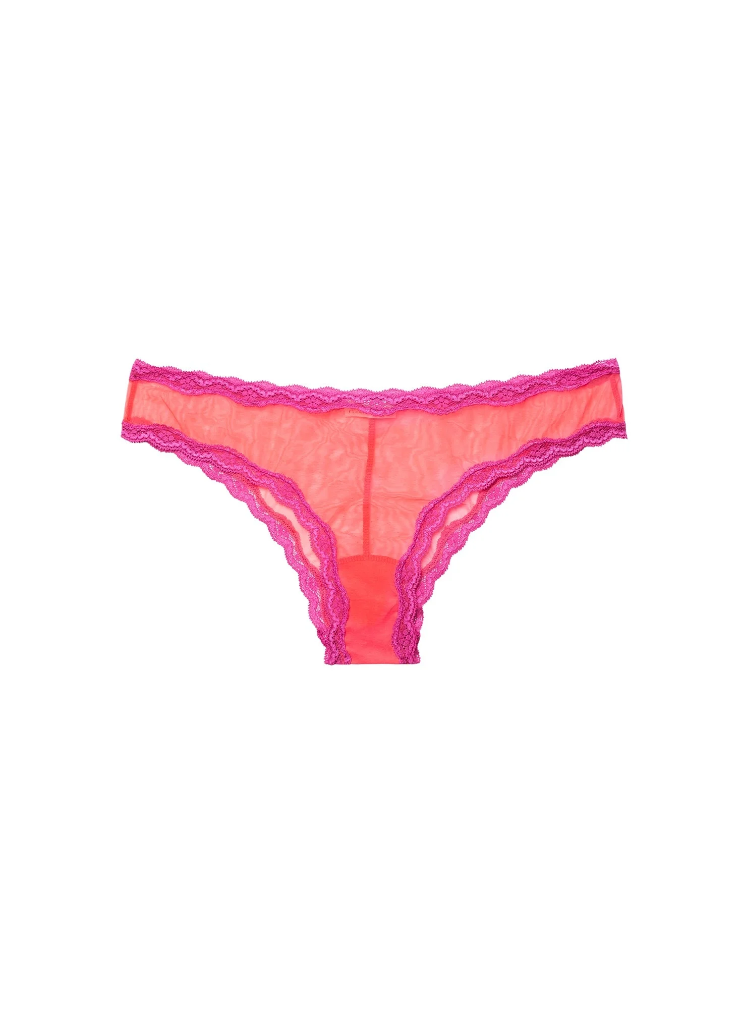 The quintessential bikini. Stretch tulle brief is cut to be chic, sheer and cheeky. Adorned with lace trim and center back seam. Pair yours with the matching Sheer Tulle Demi Bra. Materials & Care - Body: 82% Polyamide & 18% Elastane - Lace: 81% Nylon, 19% Spandex - Gusset: 100% Cotton - Hand wash cold & hang, or lay flat to dry. Do not soak. - SKU: PY0053-1020-001 Size & Fit - Model is wearing a size 2, the equivalent of a size Small.