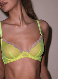 Sheer demi bra with stretch Italian tulle cups. Playful lace trim and adjustable straps with o-ring detail offer support and sexiness, making it our most essential underpinning. Pair with the matching Sheer Tulle Thong or Bikini. Materials & Care - Body: 82% Polyamide & 18% Elastane - Lace Trim: 81% Nylon & 19% Elastane - Hand wash cold, hang or lay flat to dry. Do not soak. - SKU: BR0400-0882-30A Size & Fit - Model is wearing a size 34B.