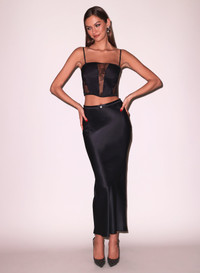 Our Silk & Bouquet Lace Corset Top, featuring seductive stretch floral lace and luxe silk paneling. Removable adjustable straps, side zip closure. Complete the look with the Bouquet Lace Cheeky and Silk Bias Skirt. Materials & Care - Body: 92% Silk & 8% Elastane - Combo 1: 79% Nylon & 21% Spandex - Combo 2: 78% Polyamide & 22% Elastane - Dry clean, or hand wash cold and lay flat to dry. Do not soak. - SKU: TP0650-0100 Size & Fit - Model is a 34B and wearing a size Small.