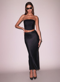 Our Silk Bias Skirt, cut from luxe bias cut silk charmeuse that hugs every curve. Features front logo "F" detailing & back slit. Side invisible zip closure. Looks chic paired with the matching Silk Corset Top. Materials & Care - Body: 100% Silk - Dry clean only - SKU: SK0201-0100 Size & Fit - Model is 5'11 and wearing a size S.