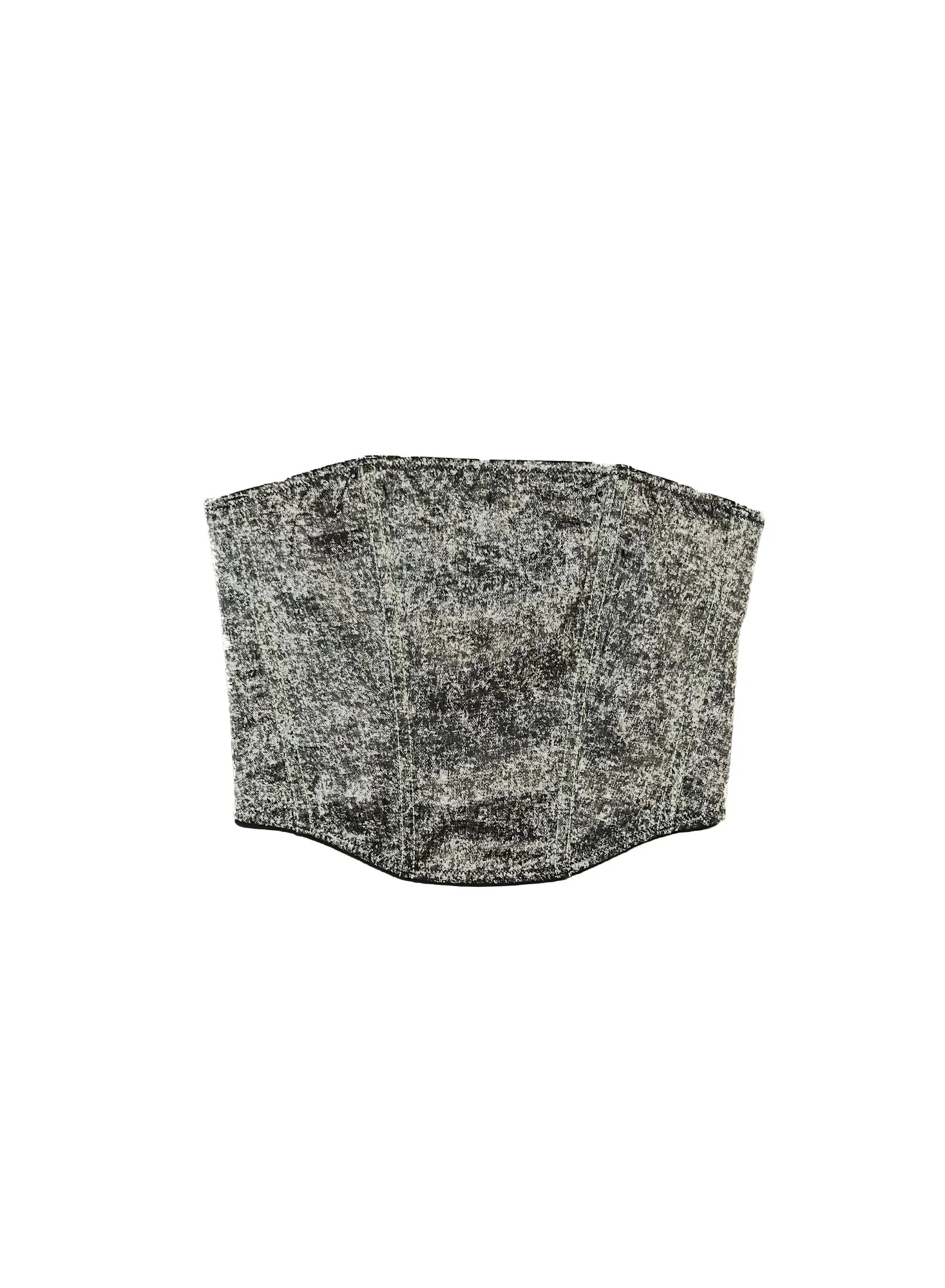 Our acid wash Silk Corset Top with neon green stitching. Ultra flattering soft boning with power mesh back and size zipper. Take it out with the matching Acid Wash Silk Mini Skirt. Materials & Care - Body: 92% Silk & 8% Elastane - Dry clean, or hand wash cold & lay flat to dry. Do not soak. - SKU: TP0658-0888 Size & Fit - Model is wearing a size Small.