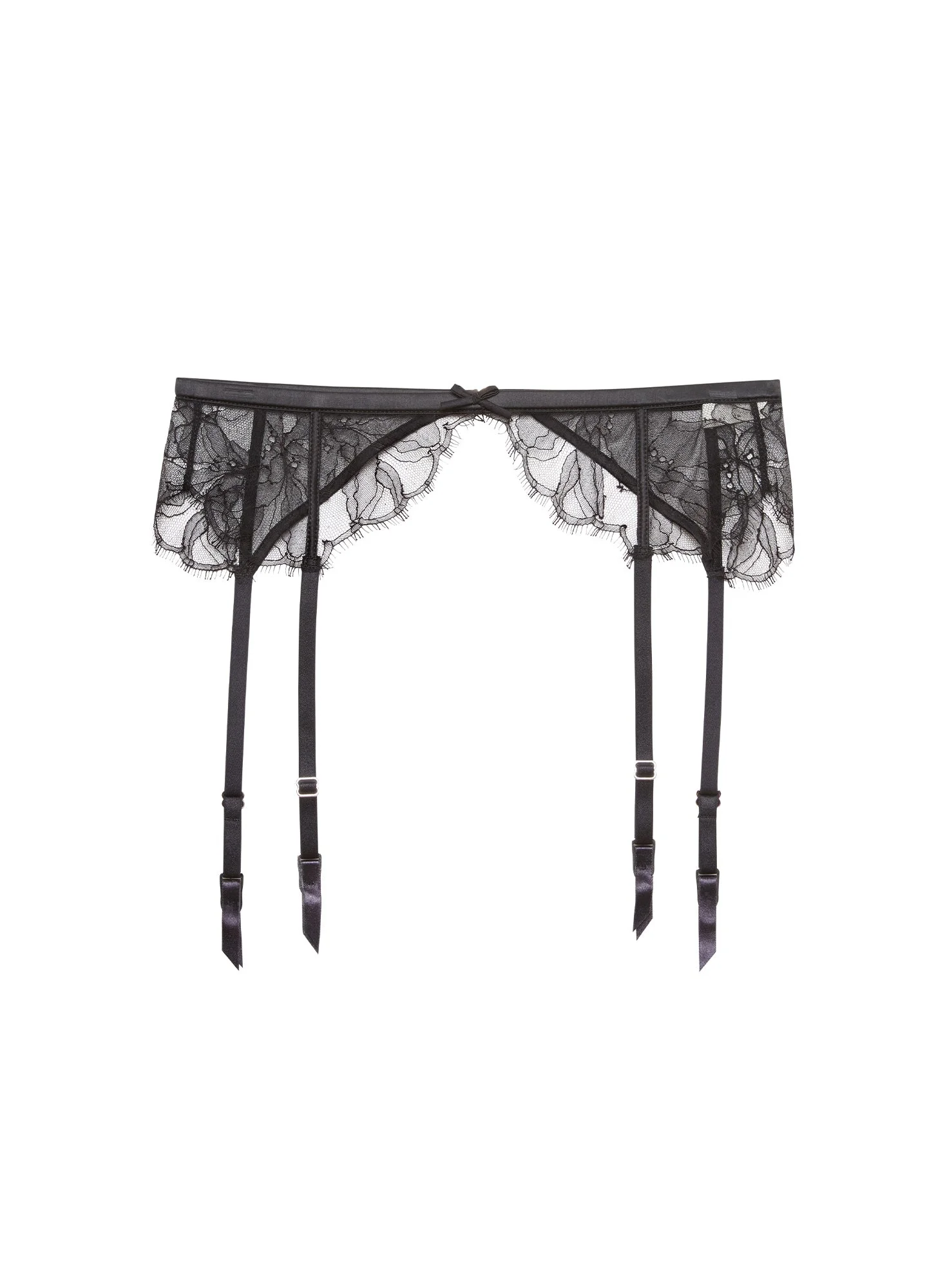 Our Sophia Lace Garter Belt, cut from French Leavers lace paneling with silk covered adjustable garter straps and elastic waistband. Center back closure sits at waist with adjustable slider. Complete this seriously sexy set with the matching Sophia Lace Balconette Bra and Cheeky or Thong. Materials & Care - Body: 61% Polyamide & 39% Cotton - Combo 1: 92% Silk & 8% Elastane - Combo 2: 85% Polyamide & 15% Elastane - Hand wash cold, hang or lay flat to dry. Do not soak. - SKU: GR0094-0100-001 Size & Fit - Model is wearing a size 2, the equivalent to size Small.