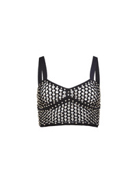 Our Spotlight Bralette, made from soft crochet stretch knit with embellished stone detailing. Longline style with soft cup, no lining. Complete the look with the Le Stretch Micro Seduce U-Plunge Bra and matching Spotlight Mini Skirt. Materials & Care - Body: 62% Cotton & 38% Stretch Nylon - Lining: 90% Nylon & 10% Spandex - Dry clean or hand wash cold & lay flat to dry. - Spot clean only - SKU: BR0521-0100 Size & Fit - Model is a 34B and wearing a size Small.