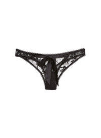 Wrapped with a bow. Our Untie Me Cheeky, cut from stunning stretch lace with flirty picot trim and lush silk tie back. Untie the bow and watch the garment fall off the body. Pair with the matching Untie Me Demi Bra or Untie Me Nightie. Materials & Care - Body: 100% Polyamide - Combo: 92% Silk & 8% Elastane - Gusset: 100% Cotton - Hand wash cold & lay flat to dry. Do not soak. - SKU: PY0440-0100-001 Size & Fit - Model is wearing a size 2, the equivalent to size Small.