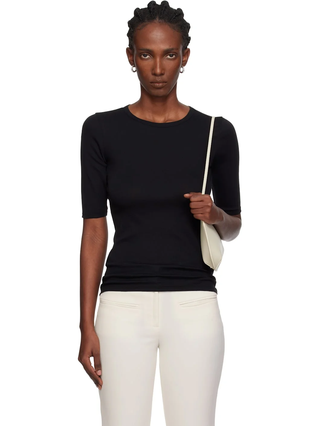 Lightweight organic cotton jersey T-shirt. Rib-knit crewneck and cuffs. Supplier color: Black 100% organic cotton. Made in Portugal 261924F110069